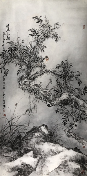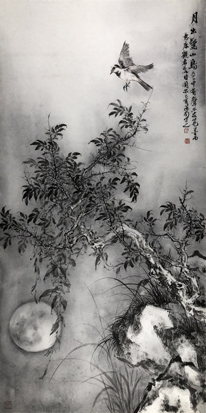 00051 谢运南 月出惊山鸟 68cm x 137cm