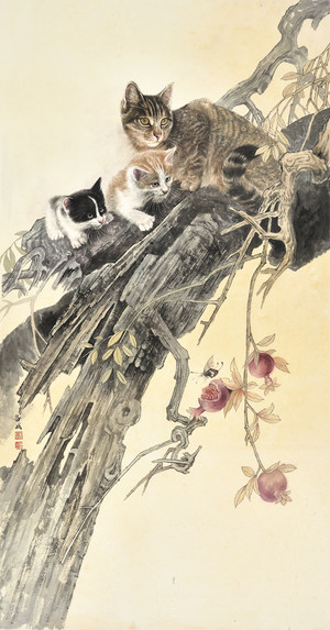 刘备战 工笔猫 132cmx66cm