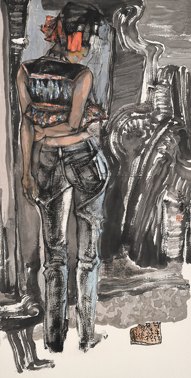 王良民 穿牛仔裤的花腰傣 68cm x 138cm
