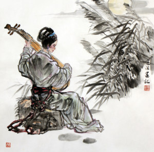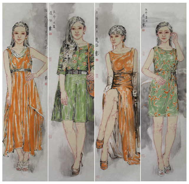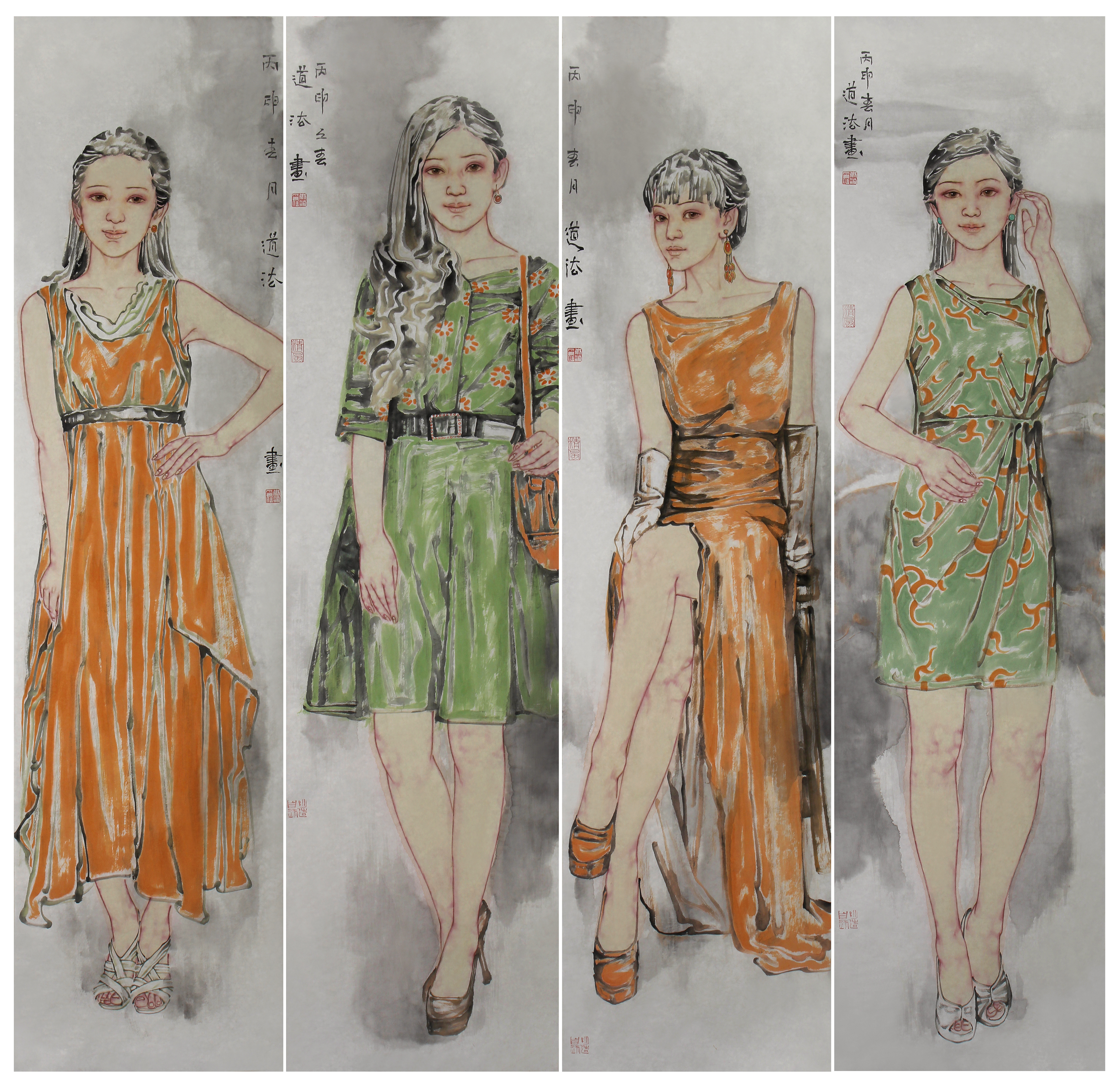 00041 夏道法 现代人物四条屏 34cm x 138cm x 4