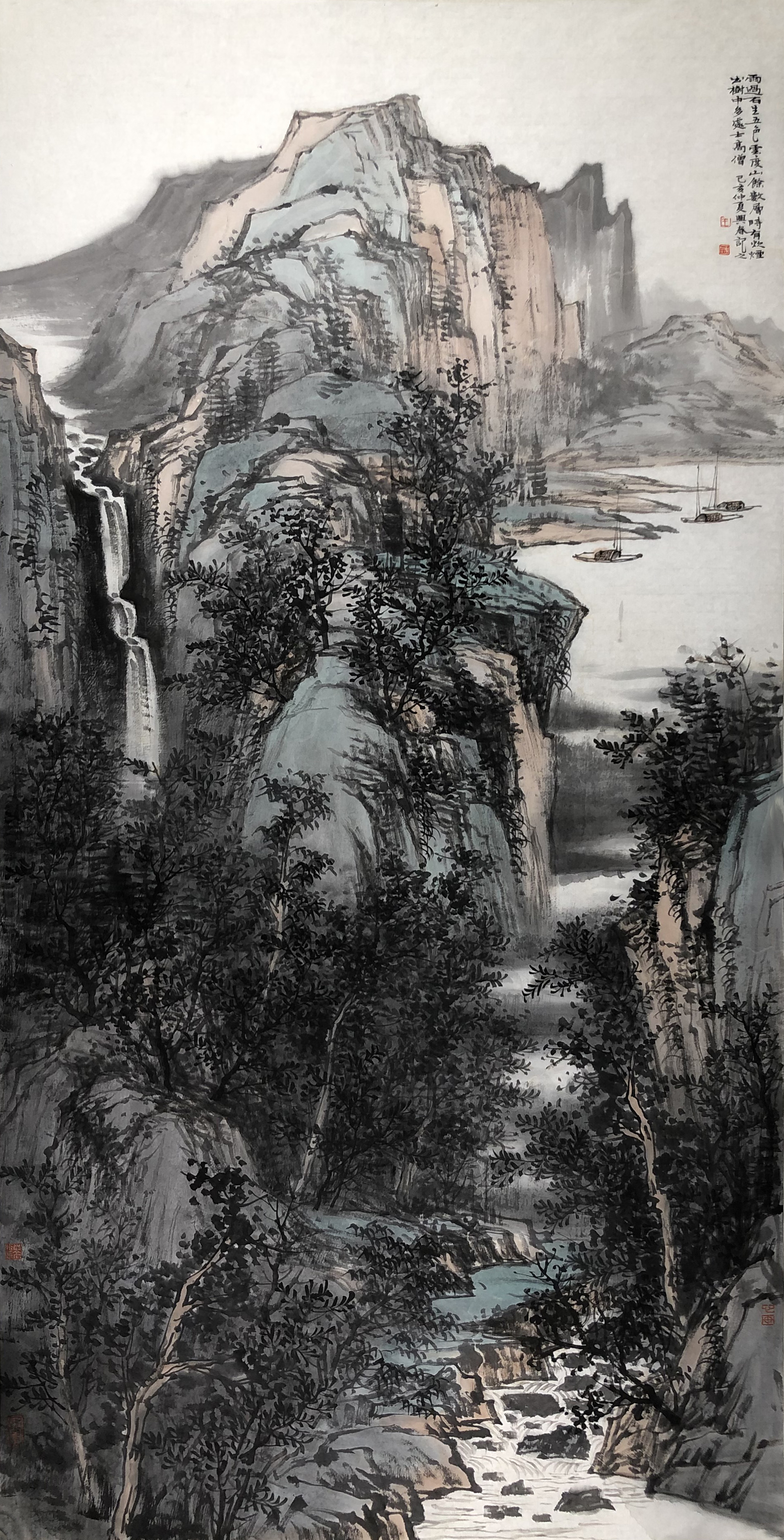 00057 王兴春 雨后石生五色 69cm x 138cm