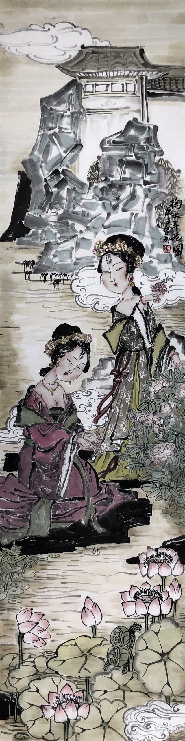 00071 胡爱玲 蕉美人图 35cm x 139cm