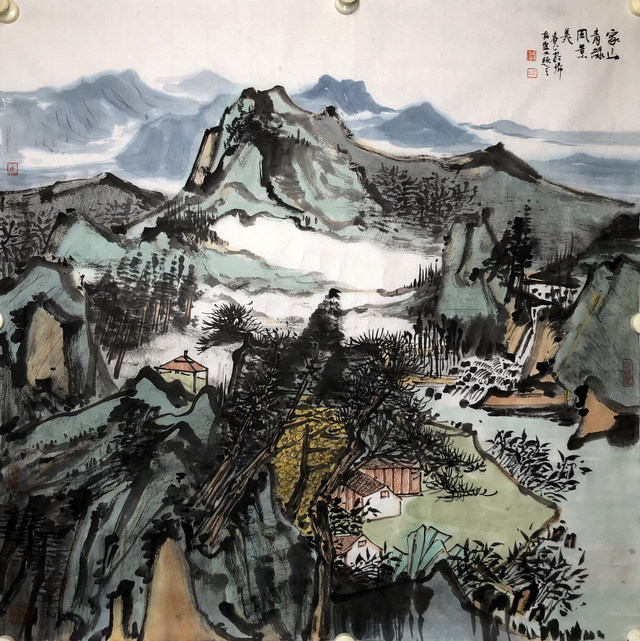 00075 武春玉 家山青绿风景美 68cm x 68cm