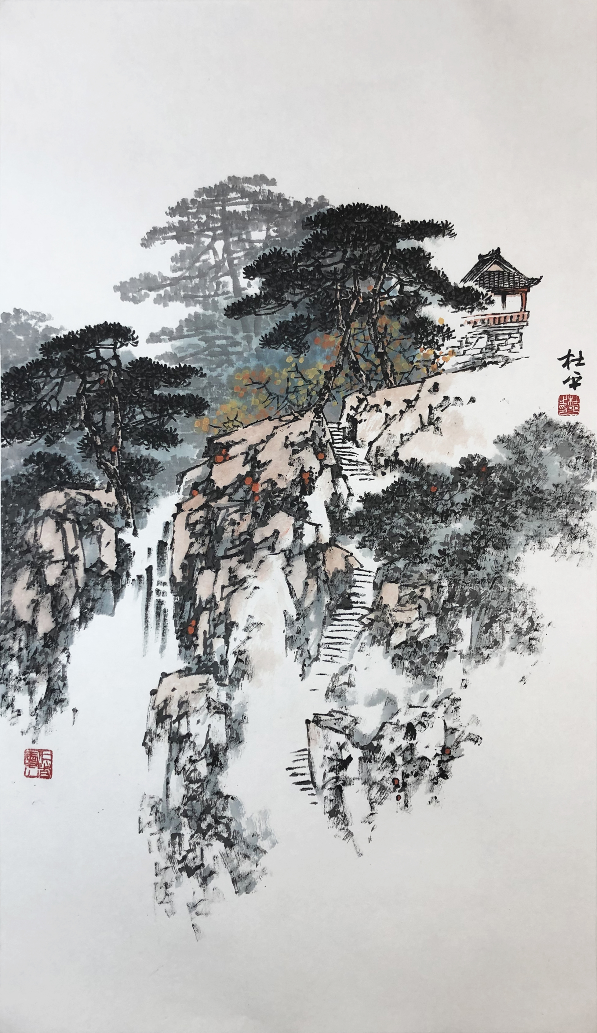 观杜平山水作品,或大气磅礴,或雄壮浑厚,或笔墨劲道,或诗意盎然,林林总总,不一而足,其笔法既有现代意识,同时不失古人法度,观之,给人留下无限的遐想,是当下为数不多的坚持传统绘画艺术的殉道者。