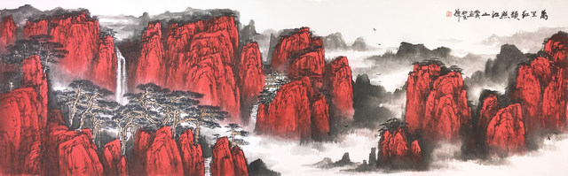 00164 王依民 万里红韵照江山 180cm x 60cm
