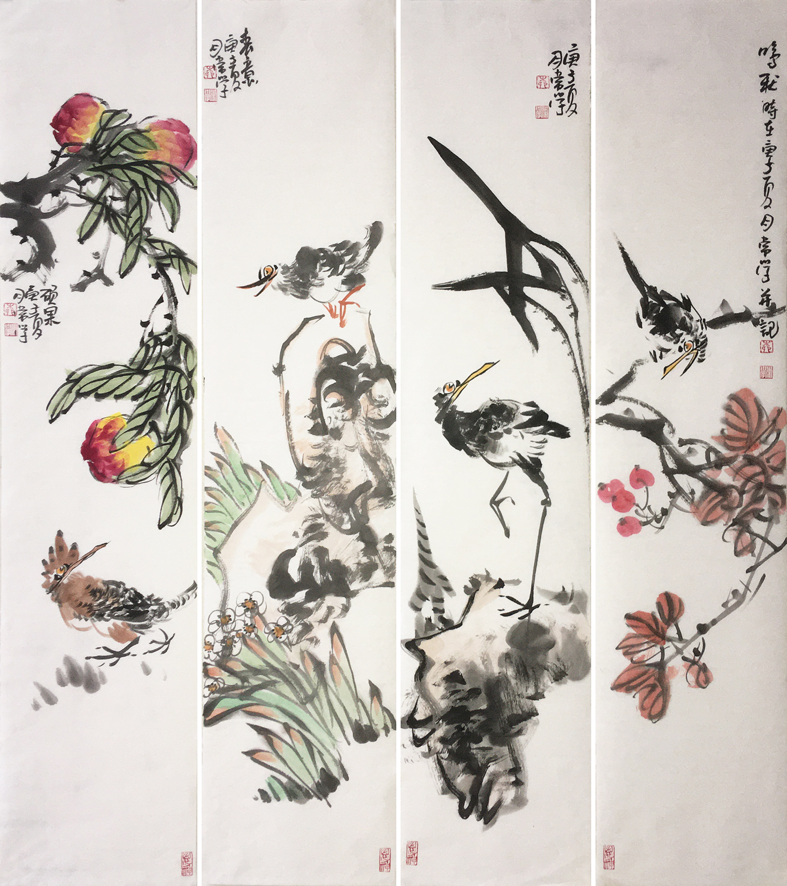 00222 柳常学 花鸟四条屏 23cm x 105cm x 4