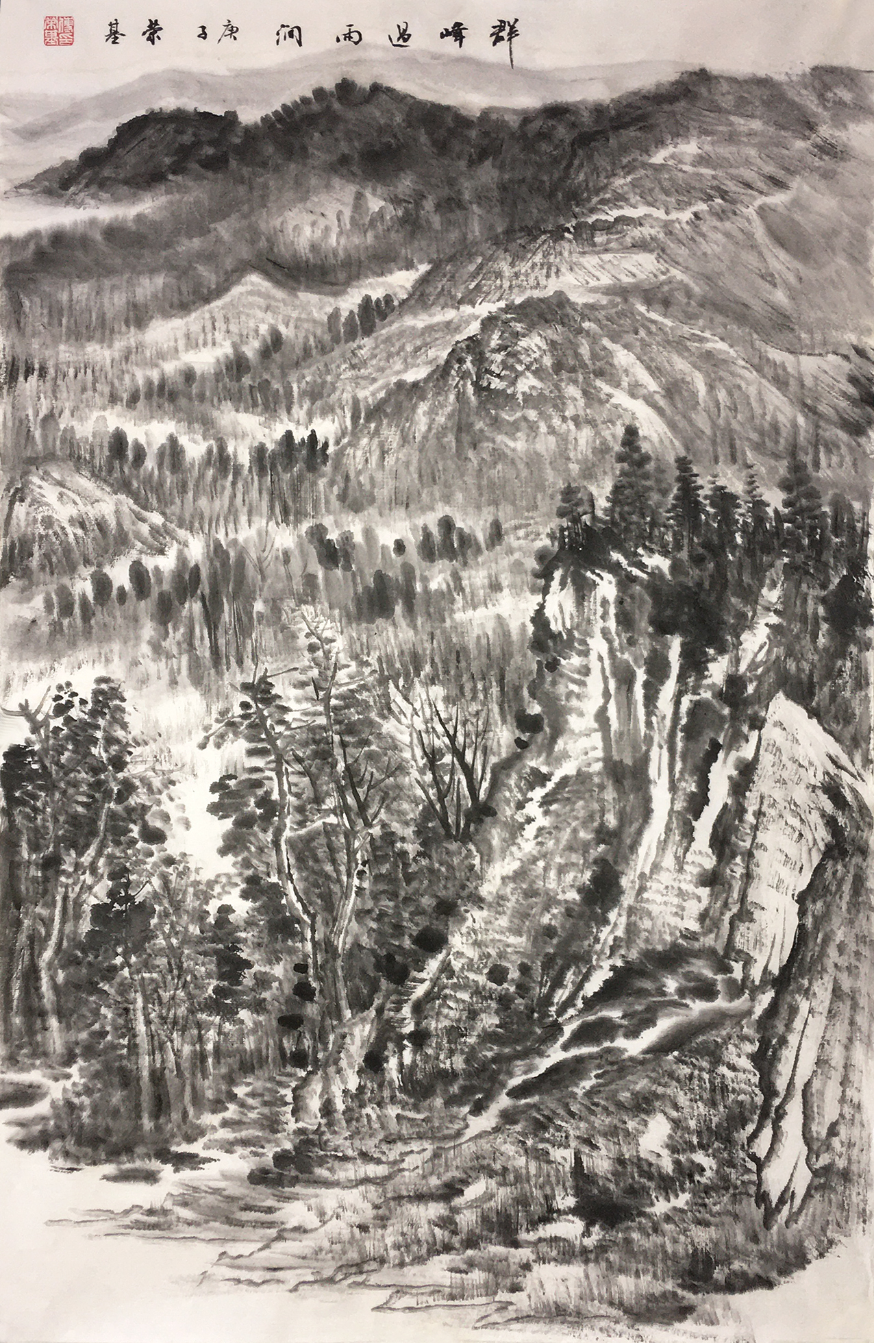 00207 付荣基 群峰遇雨涧 45cm x 69cm