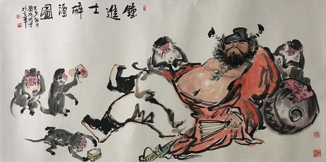 刘兆鸿 钟进士醉酒图 137cm x 68cm (2)