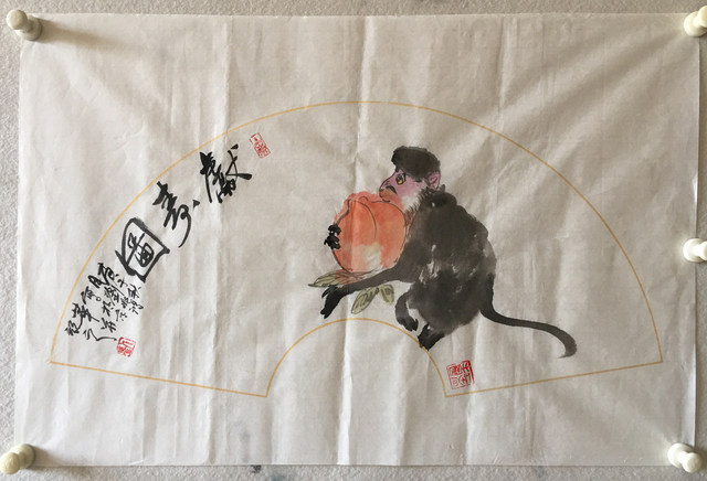 刘兆鸿(扇面) 献寿图 63cm x 30cm