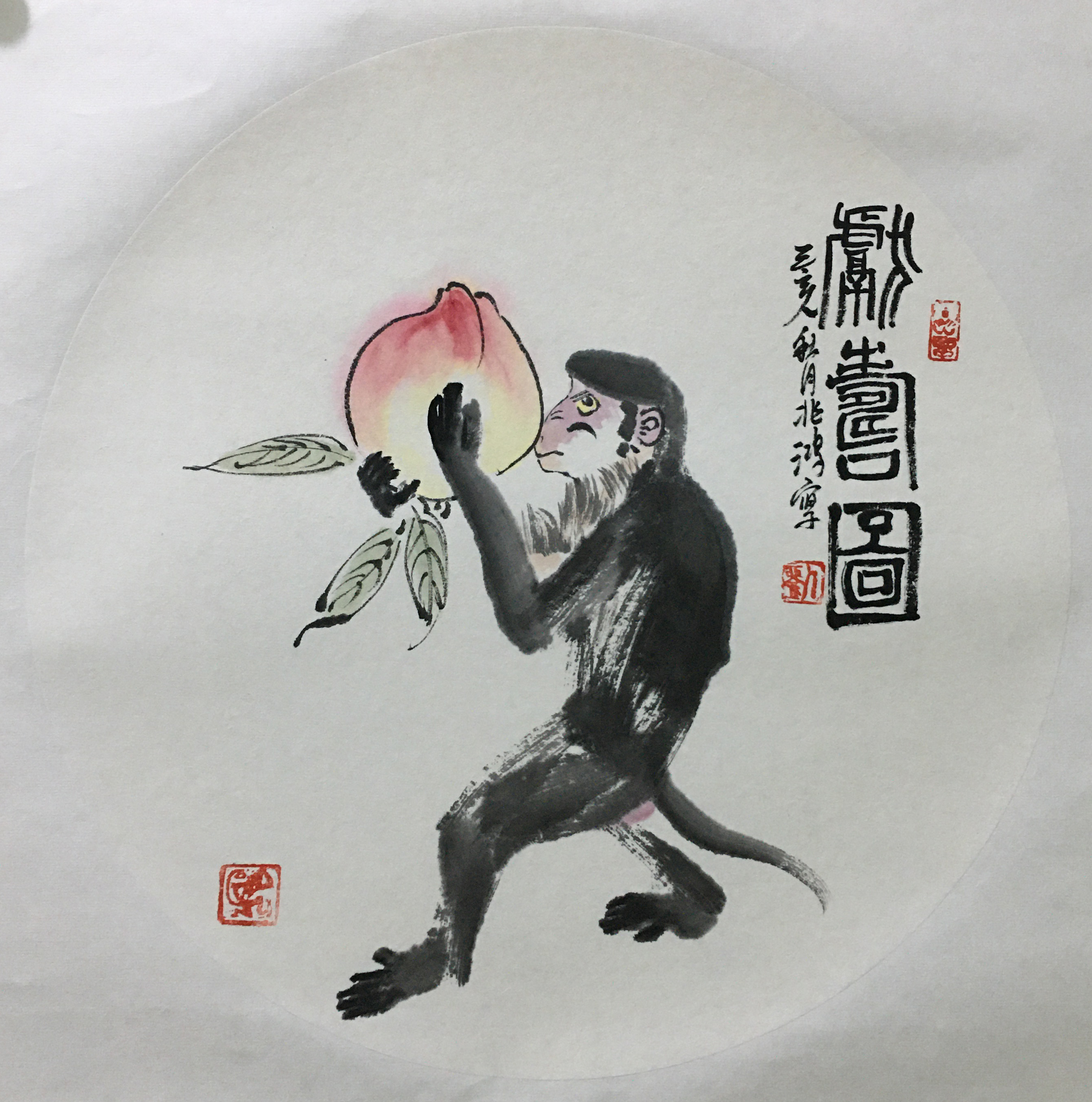 刘兆鸿(圆芯) 献寿图 42cm x 42cm