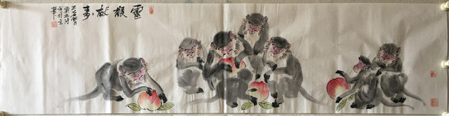 刘兆鸿 灵猴献寿 137cm x 34cm